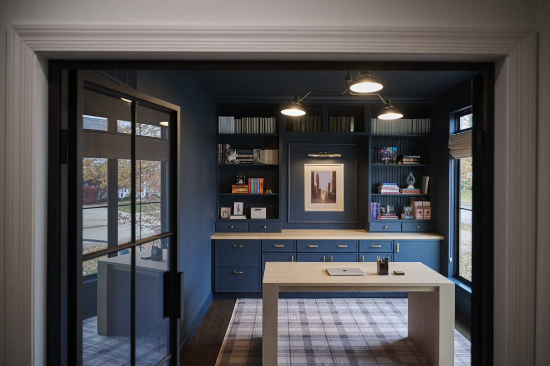Many homes have a front room that’s underused, often intended as a formal sitting room or extra living space. In this project, that room was reimagined as a dedicated home office, a choice that made both practical and design sense for how the homeowners live and work today.