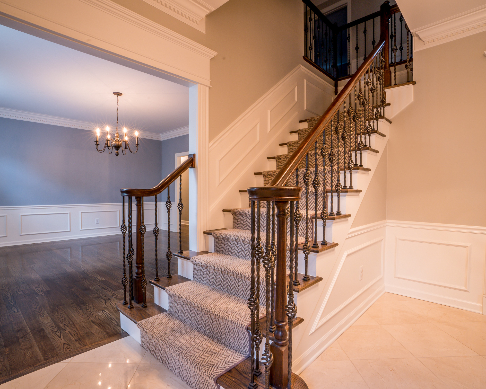 The homeowners actually had cabinets picked out before we came aboard, which helped us suggest what colors and styles would look good to use for the walls and floor. We also helped them choose tile for the kitchen and backsplash, with our input on what would flow together to make the space look a little more modern. That’s really what they were after: more of a contemporary look. Much of that just comes from changing the paint color on the walls, trim and flooring, all of which can dramatically changed the look of a house without needing to spend a bunch of money on a full remodel. Given the color of the cabinets, we tried to stay with warm color tones. In general, sticking with similar tones to your walls and flooring really tie everything together.